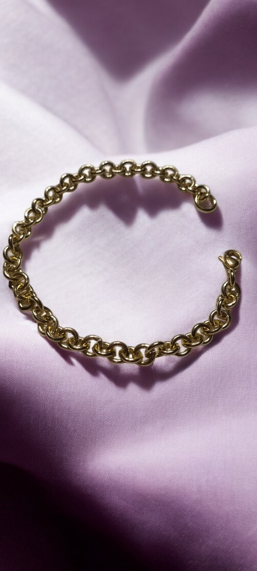 Bracciale filo di maglie grumetta incastrata e battuta dorata