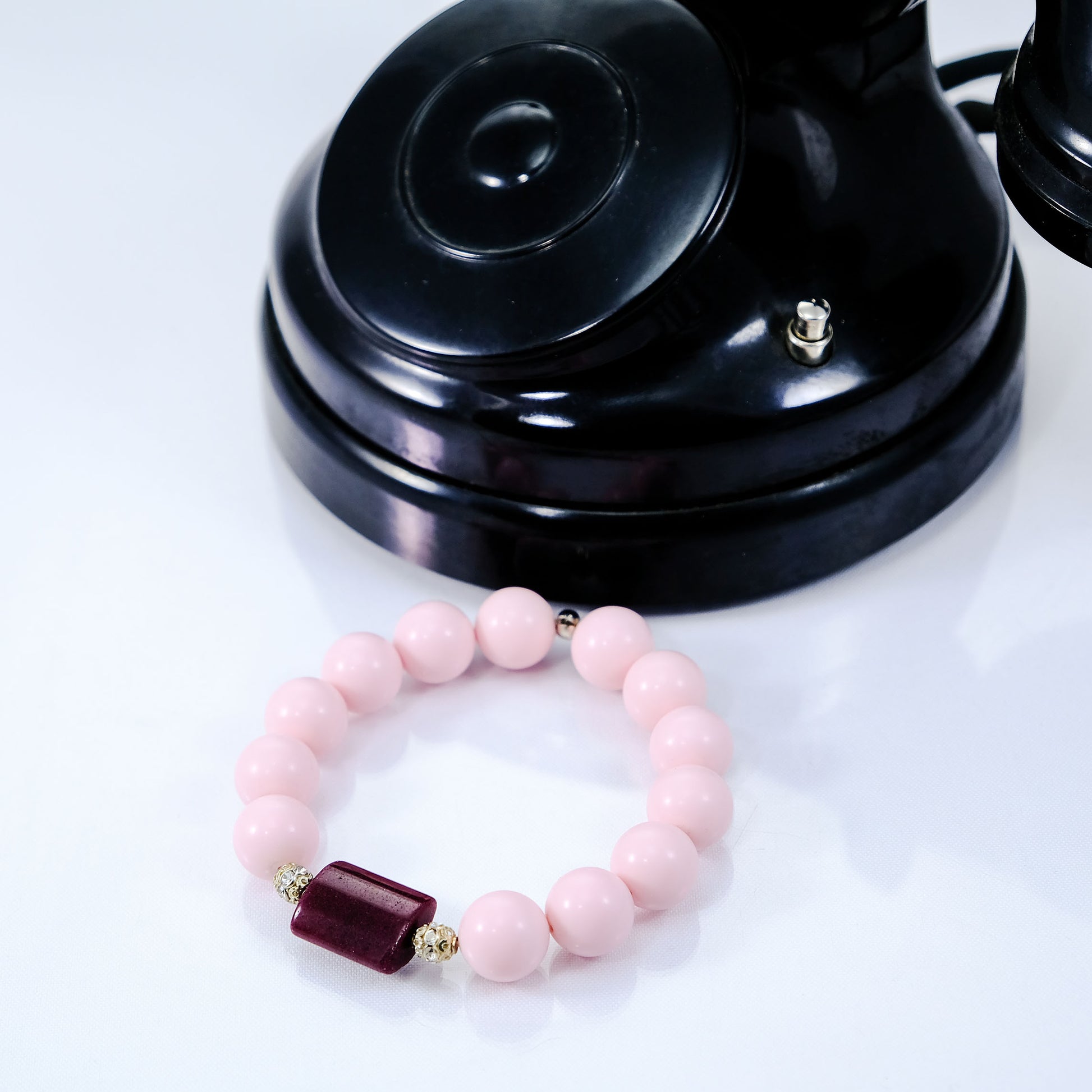 Bracciale ZELDA 034 elastico, pasta di corallo rosa e agata fucsia.