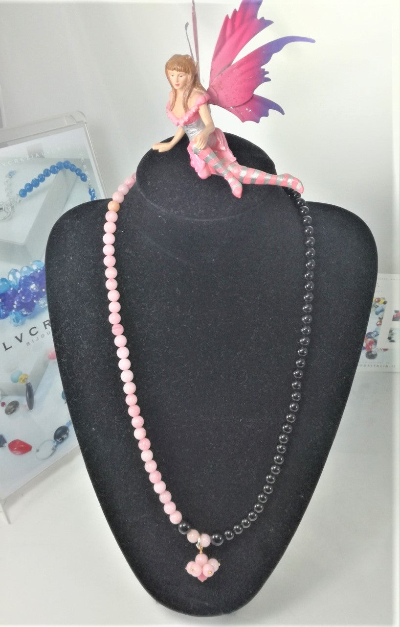 Collana LE PIETRE .048 un filo perle onice e quarzo rosa con ciondolo.